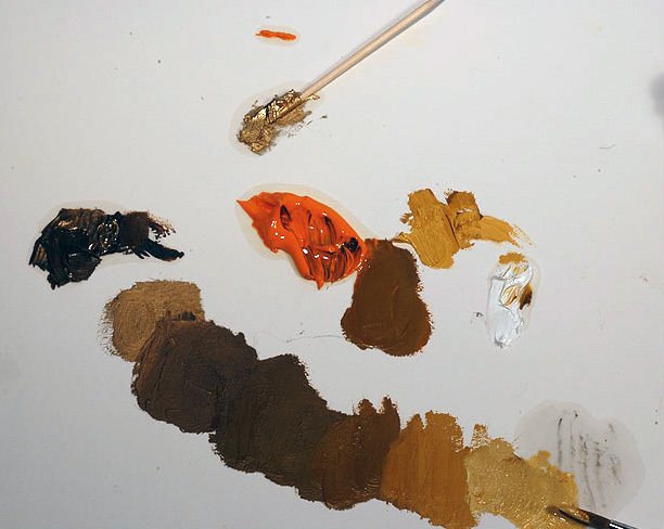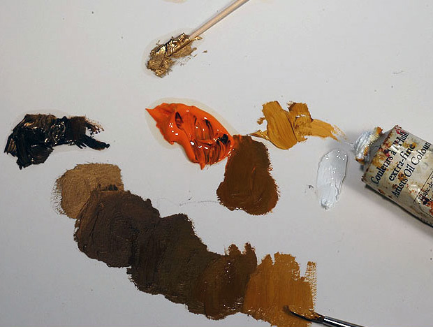 dorée:la Terre d'ombre brûlée, le jaune de chrome, et le jaune